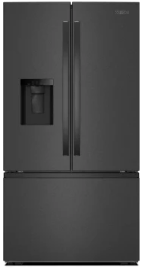 The Whirlpool WRFF3736S is a 36-inch freestanding French door refrigerator offering 30 cu. ft. of spacious storage. Featuring durable glass shelves for easy cleaning and Sabbath Mode for religious observance, it also includes an external ice and water dispenser with dual ice makers to meet high-demand needs. This model is ADA compliant, ensuring accessible design, and ENERGY STAR® certified for efficient energy use. Its black stainless steel finish combines durability with sleek aesthetics, making it a reliable and convenient addition to any modern kitchen.