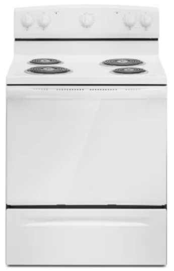 Amana ACR4203MNW 30 Inch Freestanding Electric Range with 4 Coil Elements, 4.8 cu. ft. Oven Capacity, SpillSaver™ Upswept Cooktop, Storage Drawer, and Temp Assure™ Cooking System: White