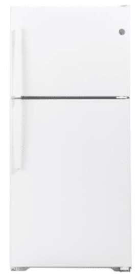 The GE GTS19KGNRWW delivers reliable refrigeration with a spacious 19.2 cubic foot capacity perfect for families. This 30-inch top freezer model features edge-to-edge glass shelves for flexible storage and a dedicated snack drawer for easy access to frequently used items. The spillproof freezer floor contains spills before they spread, while the never-clean condenser reduces maintenance hassles. Upfront controls and bright LED lighting make operation intuitive and visibility excellent. Garage-ready design handles temperature fluctuations, and Sabbath Mode accommodates religious observances. Available in classic white to complement any kitchen.