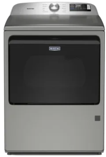 Experience superior drying performance with the Maytag MGD6205RR gas dryer. This 27-inch model features a spacious 7.4 cu ft. capacity, perfect for handling large loads efficiently. With 10 customizable drying cycles and 5 temperature settings, you'll find the ideal option for any fabric type. Advanced moisture sensing technology automatically adjusts drying time to prevent over-drying and save energy. The Quick Dry cycle tackles smaller loads in minutes, while the Wrinkle Prevent option keeps clothes fresh until you're ready to fold. Steam functionality helps reduce wrinkles and refresh garments. Smart capabilities add convenience to your laundry routine. Built to last with Maytag's trusted reliability, this classic silver dryer is an excellent addition to any home.