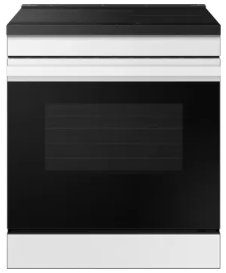 Experience premium cooking with the Samsung BESPOKE NSI6DB930012 slide-in induction range. This 30-inch model features four induction elements for precise temperature control and rapid heating, paired with a spacious 6.3 cu. ft. oven. Advanced cooking modes include convection, air fry, and auto conversion to optimize results across recipes. The proof mode supports bread baking, while steam and self-cleaning functions simplify maintenance. Additional conveniences include a storage drawer, Sabbath mode for religious observance, and ADA compliance for accessibility. ENERGY STAR certified for efficiency, this white glass range combines sophisticated design with intelligent cooking technology for the discerning home chef.