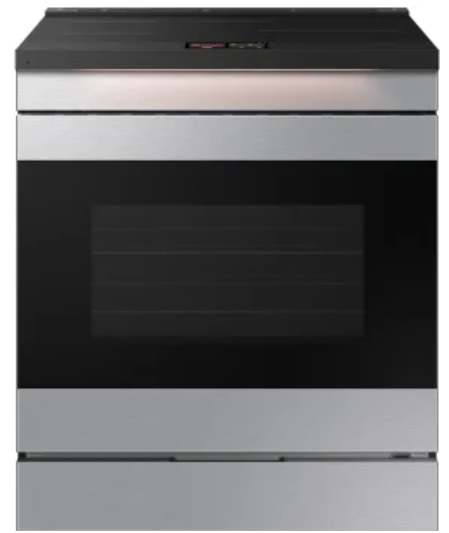 Samsung BESPOKE NSI6DG9900SR 30 Inch Slide-In Induction Smart Range with 4 Elements, 6.3 cu. ft. Convection+ Oven, Sync Burner, Storage Drawer, Air Fry, Sabbath Mode, Self & Steam Clean, ADA Compliant, and ENERGY STAR®: Stainless Steel