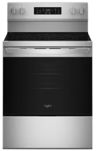The Whirlpool WFES5730SZ brings professional-grade cooking to your kitchen with versatile heating options and innovative technology. This 30-inch freestanding electric range features 5 cooking elements, including 2 FlexHeat™ Dual Radiant Elements that adapt to your cookware size for efficient, even heating. The spacious 5.3 cu. ft. oven capacity accommodates large meals and multiple dishes simultaneously. Air Cooking Technology delivers faster, crispier results without preheating, while the No Preheat Air Fry function lets you enjoy fried favorites with less oil. Choose from 5 cooking modes to match your culinary needs. Designed for easy maintenance, the WipeClean™ coating resists fingerprints and wipes clean effortlessly. High Speed Preheat gets your oven ready quickly, and the convenient No Preheat Mode saves time on everyday cooking. Sabbath Mode and Star-K Certification make this range suitable for observant households. Finished in fingerprint-resistant stainless steel, this range combines durability with modern style for a kitchen upgrade that performs as beautifully as it looks.