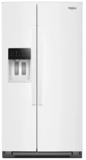 The Whirlpool WRSC5536RW is a 36-inch counter-depth side-by-side refrigerator designed for seamless integration into your kitchen. Offering 21 cubic feet of storage, it features four adjustable glass shelves and a deli drawer for organized food storage. Gallon door bins provide versatile space for beverages and condiments. Equipped with the TruCool™ System, it maintains optimal temperatures for freshness. The external ice and water dispenser delivers convenience without opening the door. ADA compliant, its white finish combines style with accessibility for an efficient, user-friendly kitchen appliance.
