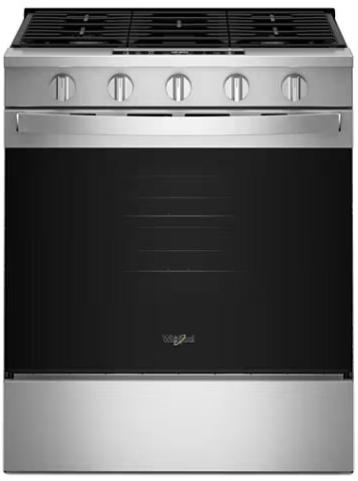 Whirlpool WSGS5030SZ 30 Inch Slide-In Gas Smart Range with 5 Sealed Burners, 5.0 cu. ft. Convection Oven, 12K BTU Griddle Zone, SpeedHeat™ Burner, Storage Drawer, Air Cooking, Self+Steam Clean, ADA Compliant and Star K