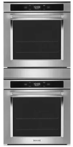 Experience professional-grade cooking at home with the KitchenAid KODC504PPS 24-inch double convection wall oven. This premium appliance features 5.2 cubic feet of total capacity across two ovens, allowing you to cook multiple dishes simultaneously at different temperatures. True convection technology ensures even heat distribution and consistent results every time. The intuitive touchscreen controls make operation effortless, while the self-cleaning function saves you time on maintenance. PrintShield™ finish resists fingerprints and smudges, keeping your kitchen looking pristine. A dedicated broil element provides versatility for finishing dishes to perfection. Installation flexibility is built in with the flush installation option and included trim kit, making this oven a seamless addition to any kitchen design. Smart capabilities connect your cooking to modern convenience. Perfect for home chefs who demand both style and performance.