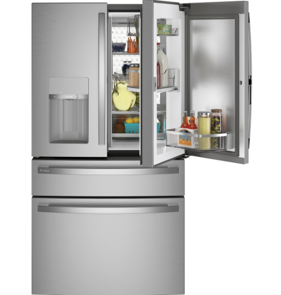 GE 4-Door French door refrigerator with door-in-door and fingerprint resistant finish.
