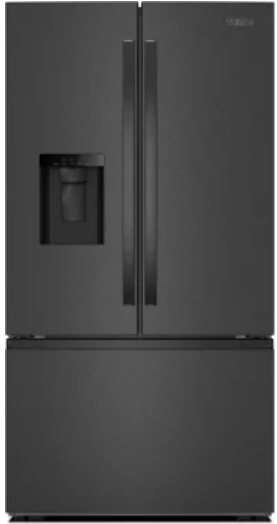 Whirlpool WRFF3536S(V/W/Z) 36 Inch Freestanding French Door Refrigerator with 30 cu. ft. Capacity, 4 Glass Shelves, Gallon Door Bins, Sabbath Mode, External Ice/Water Dispenser, ADA Compliant, and ENERGY STAR®: Black Stainless Steel